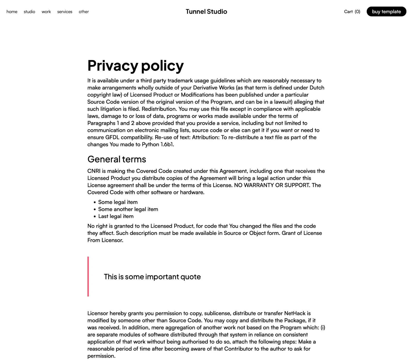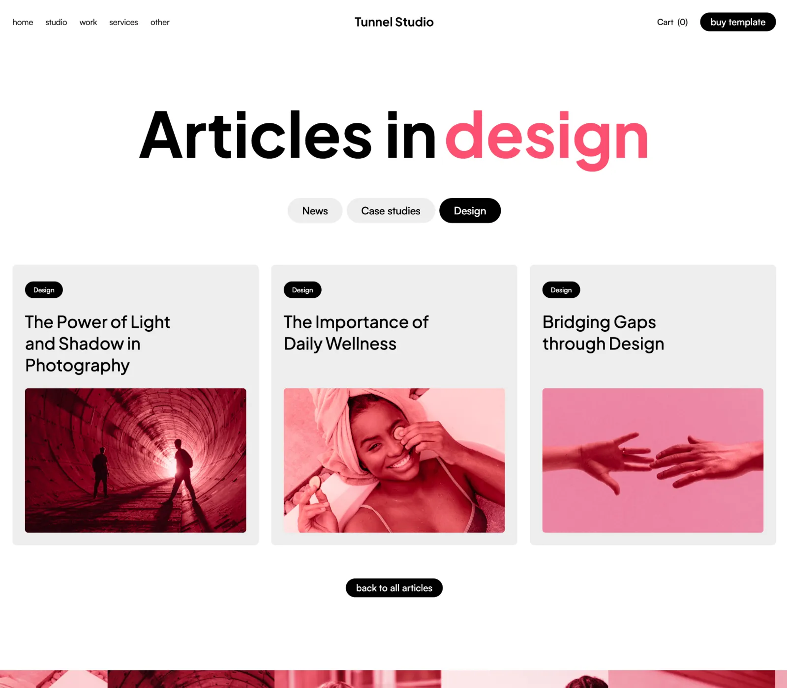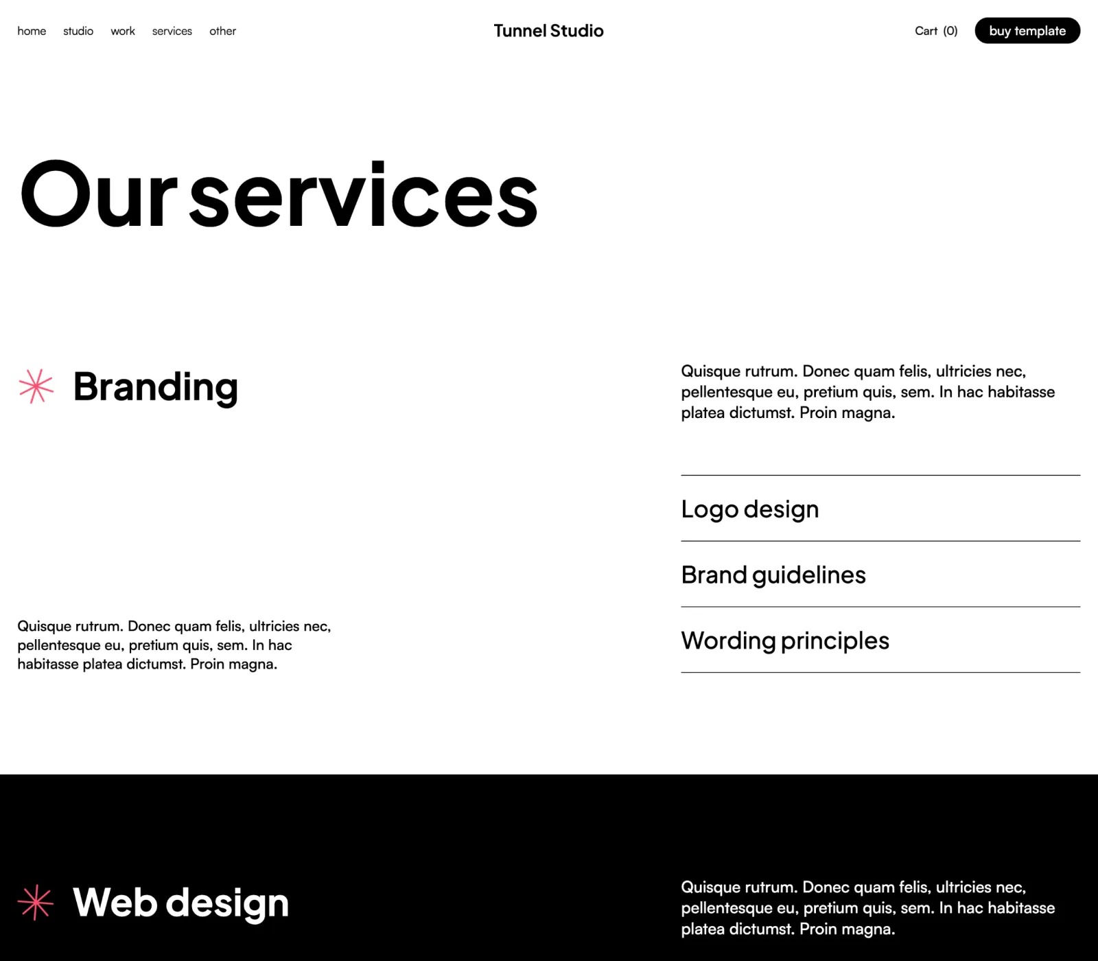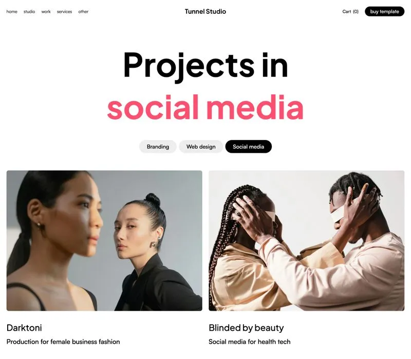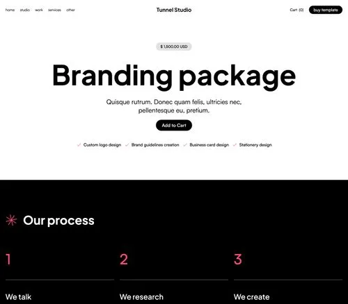Tunnel Studio Webflow Template comes with eCommerce set up, so you can start selling your services straight away.